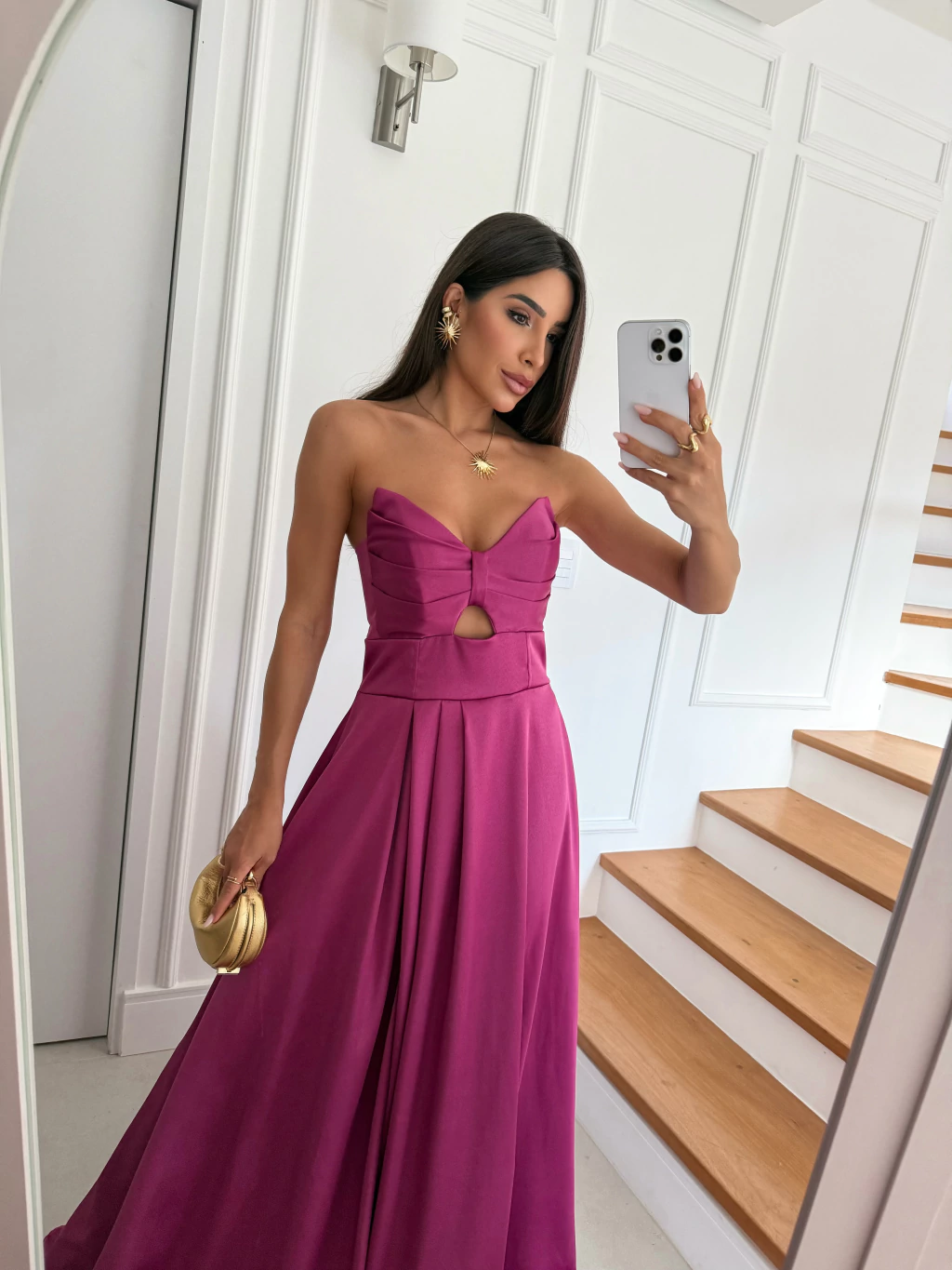 O Vestido Longo Bellano é a escolha encantadora e sofisticada para quem busca elegância e glamour em uma só peça! 🌟 Todo em zibeline, este vestido sem alças com amarração estilo corset nas costas confere um caimento impecável e um ajuste perfeito, enquanto a modelagem tomara que caia adiciona um toque moderno e refinado. 💖
